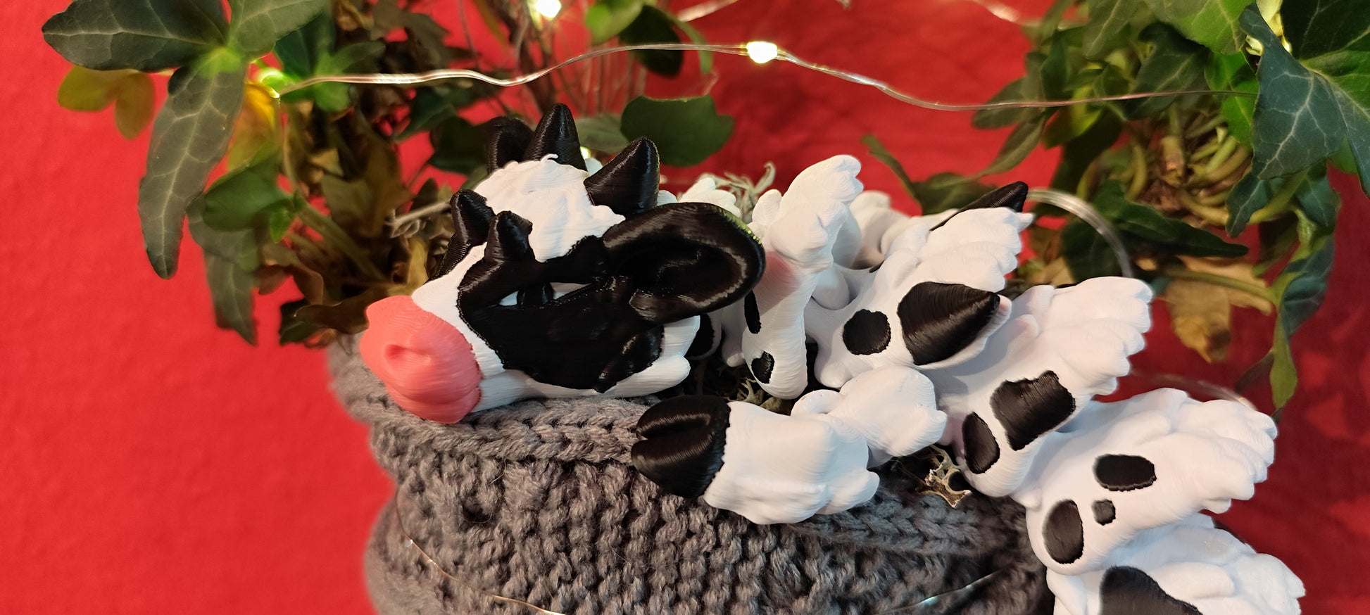 3D gedruckte flexible Kuh Mama XXL – 52 cm – bewegliche Dekofigur mit schwarzen Flecken – autorisierter Verkäufer von Cinderwings3D
