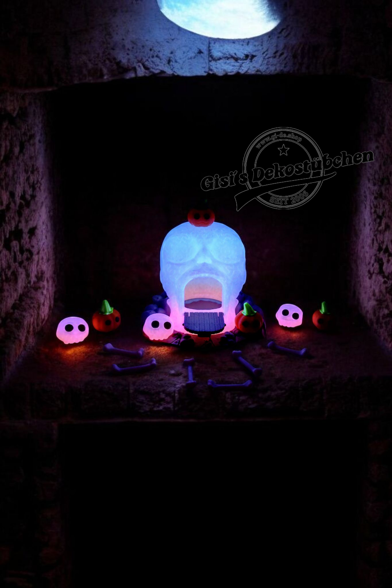 1 Großer Totenkopf mit Tür der im dunkeln leuchtet