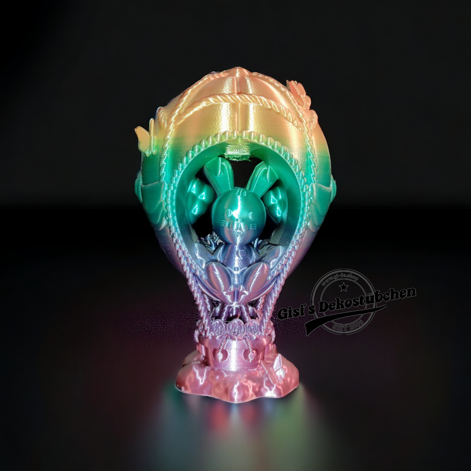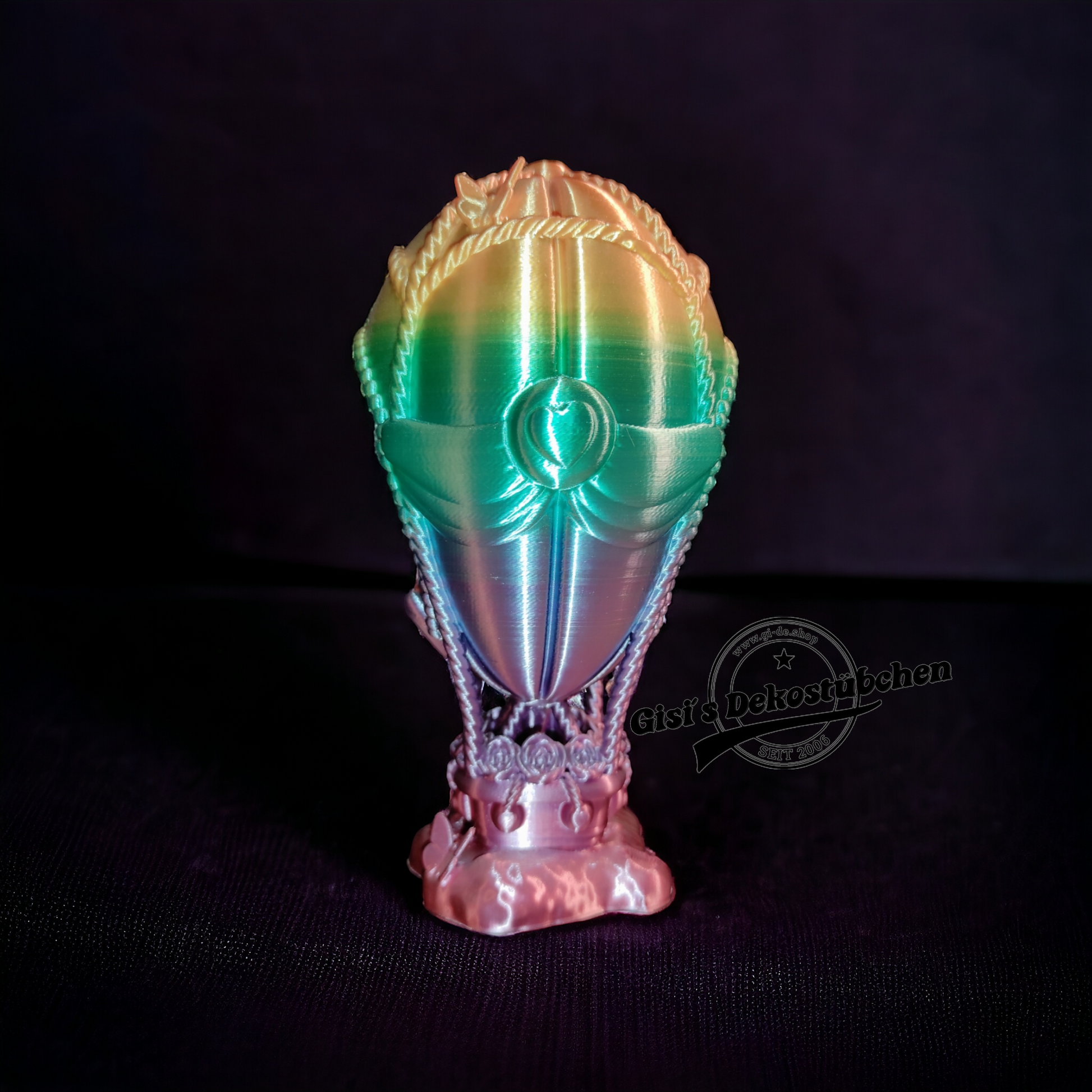 Dieser super süße Hase im Heißluftballon ist ca. 18cm hoch und da wir ihn in vielen verschiedenen Farben drucken können passt er sich ihrer Wohnung zu 100% an.