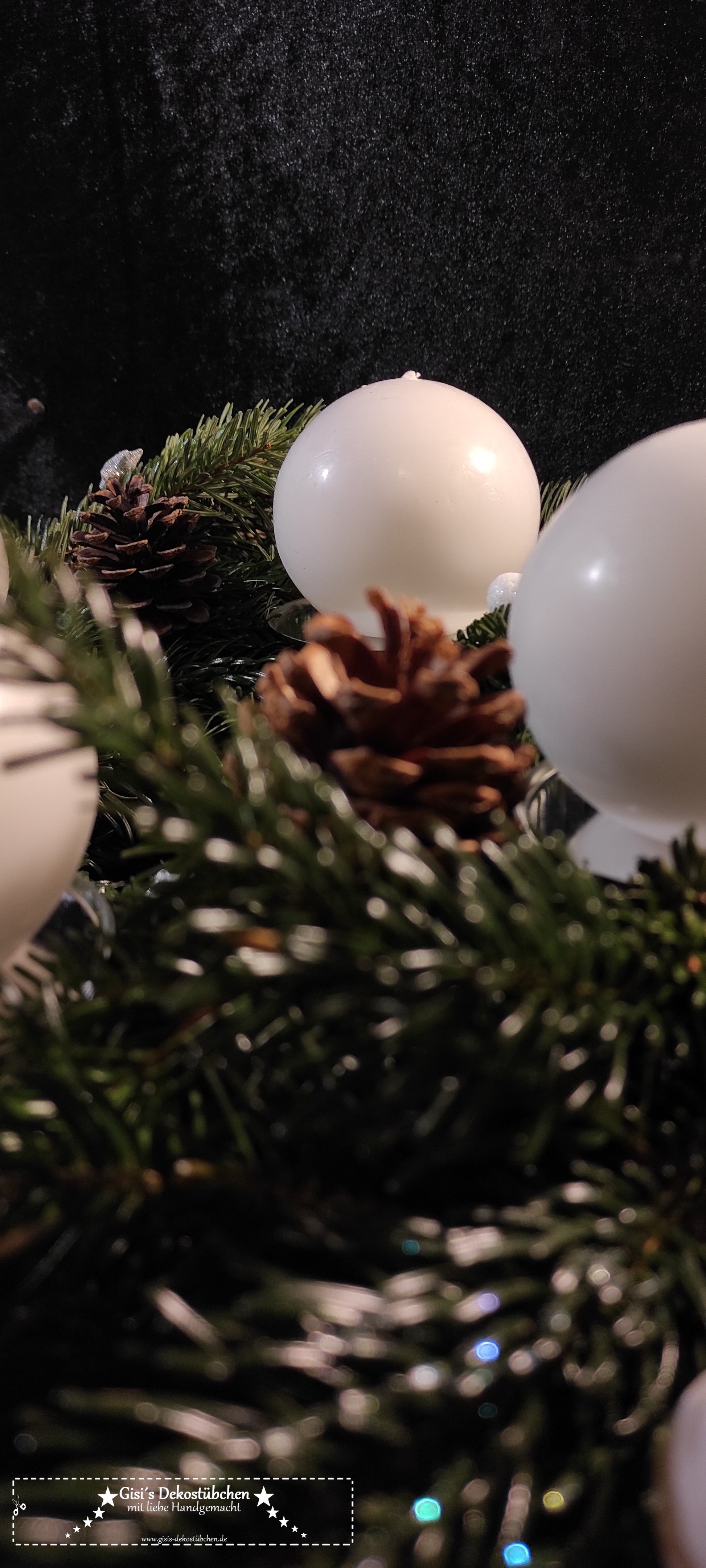 Zu eurer Sicherheit stehen die Kerzen nicht direkt auf dem Kranz sondern auf kleinen Kerzenhaltern. Das bedeutet aber trotzdem, dass ihr auf die offene Flamme acht geben müsst! Ich hafte nicht.