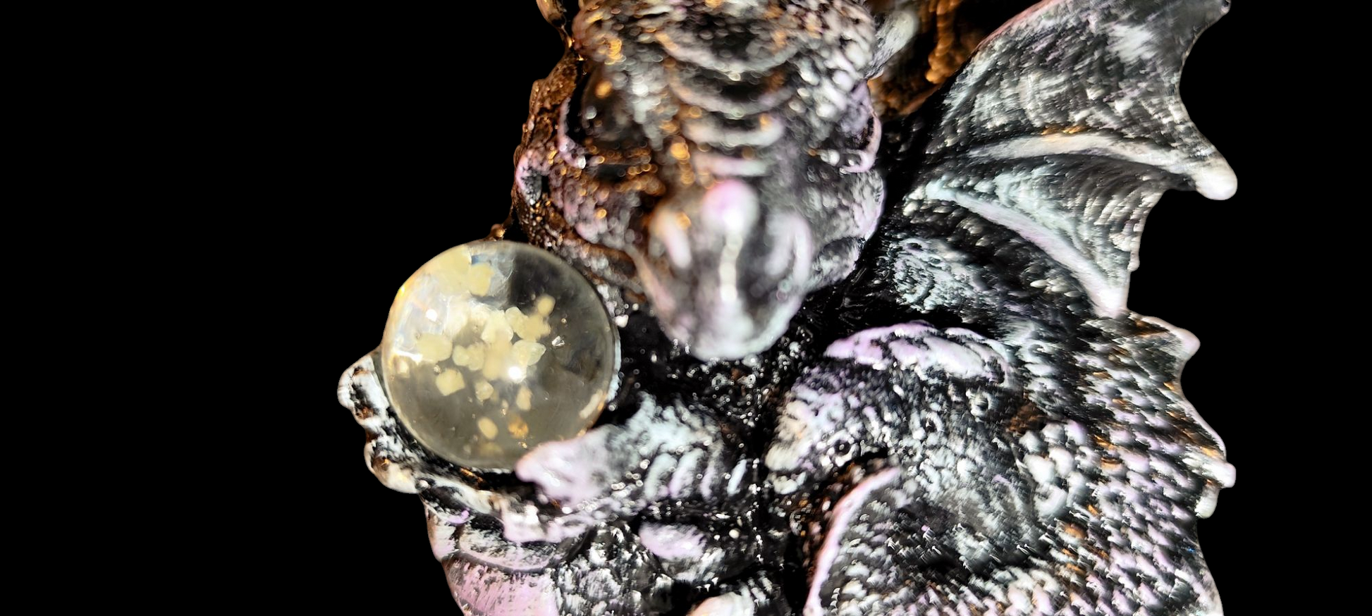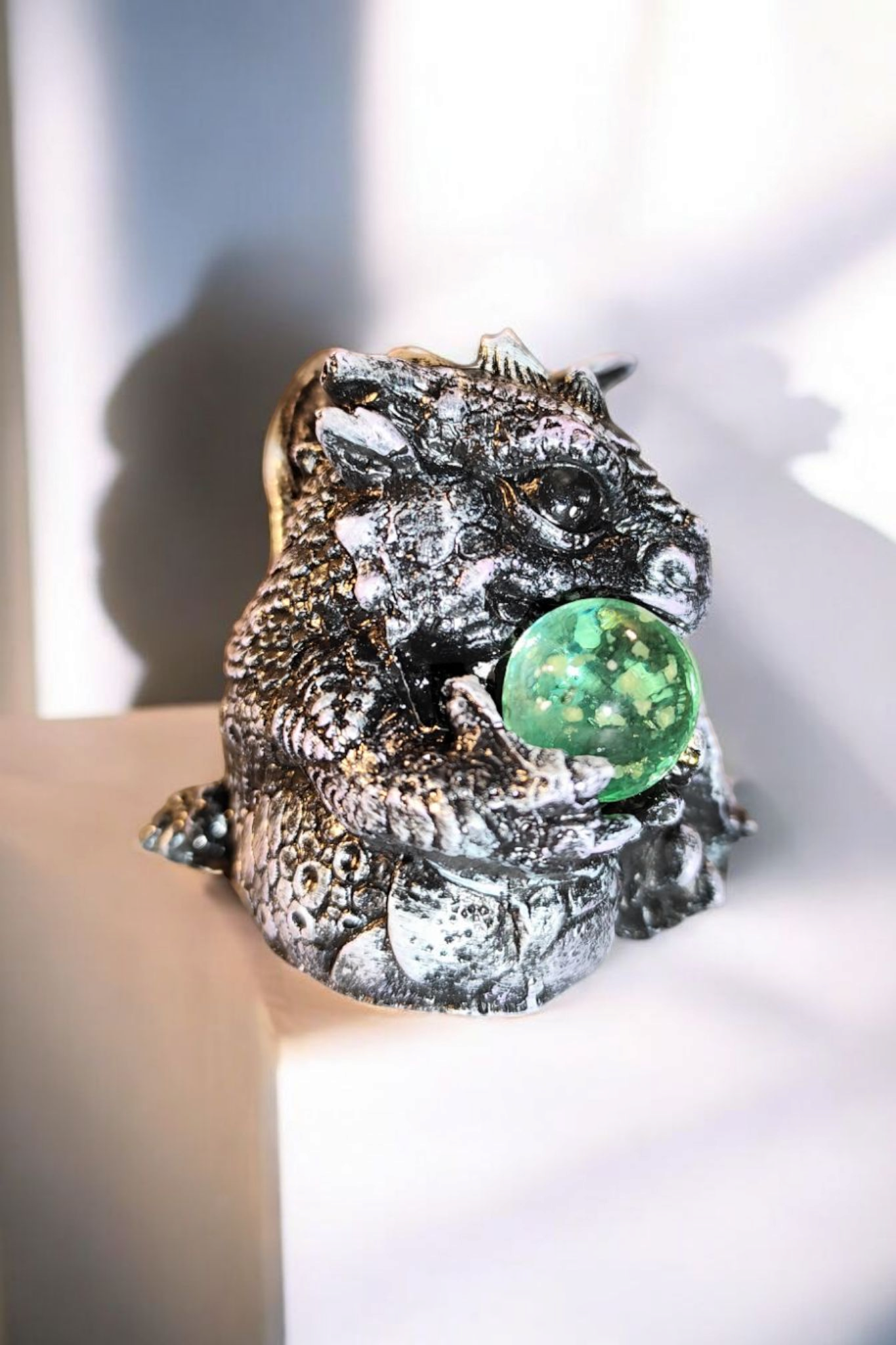 • Magischer Leuchteffekt: Die Glaskugel in der Hand des Drachen leuchtet im Dunkeln auf geheimnisvolle Weise