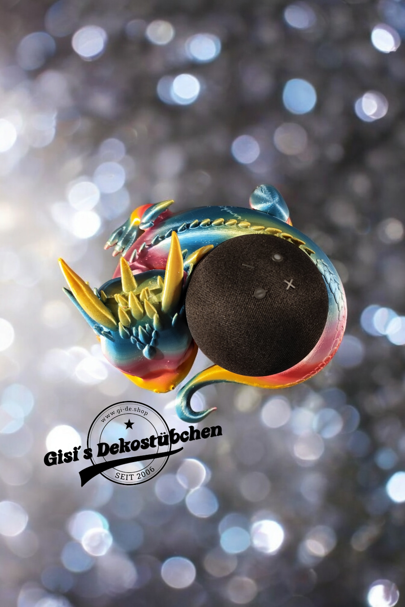 Dieser einzigartige Halter wurde speziell entworfen, um deine kugelförmigen Lautsprecher stilvoll zu präsentieren. Das niedliche Drachen-Design verleiht deinem Raum eine märchenhafte Atmosphäre und lässt Musik noch magischer klingen. Mit einer praktischen Kabeldurchführung ist dieser Halter perfekt für alle Drachenliebhaber.
