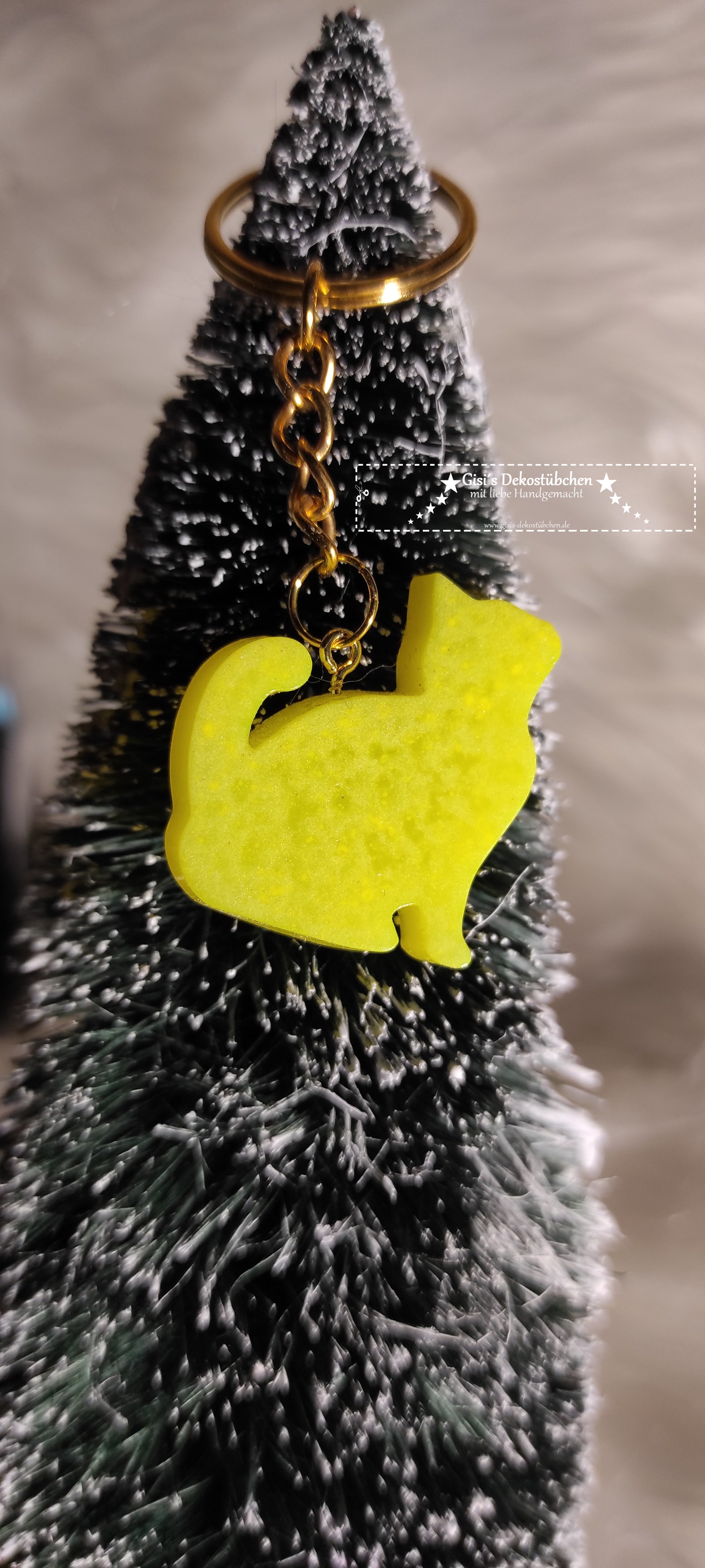 Dieser tolle Katzen Schlüsselanhänger leuchtet im dunkeln.