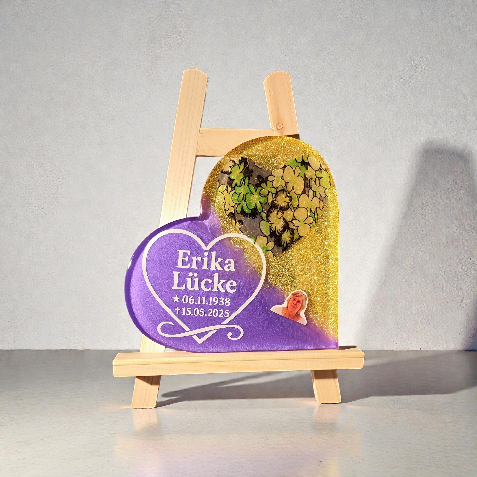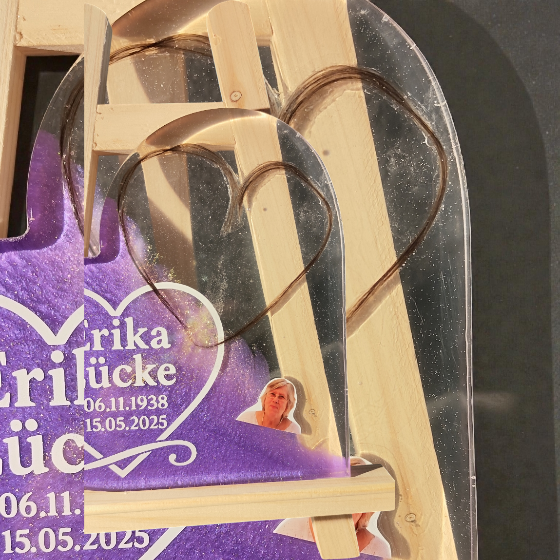 Herz zum Aufstellen mit Haaren, Zahn, Asche oder Krallen, Foto deines Tieres zur Erinnerung