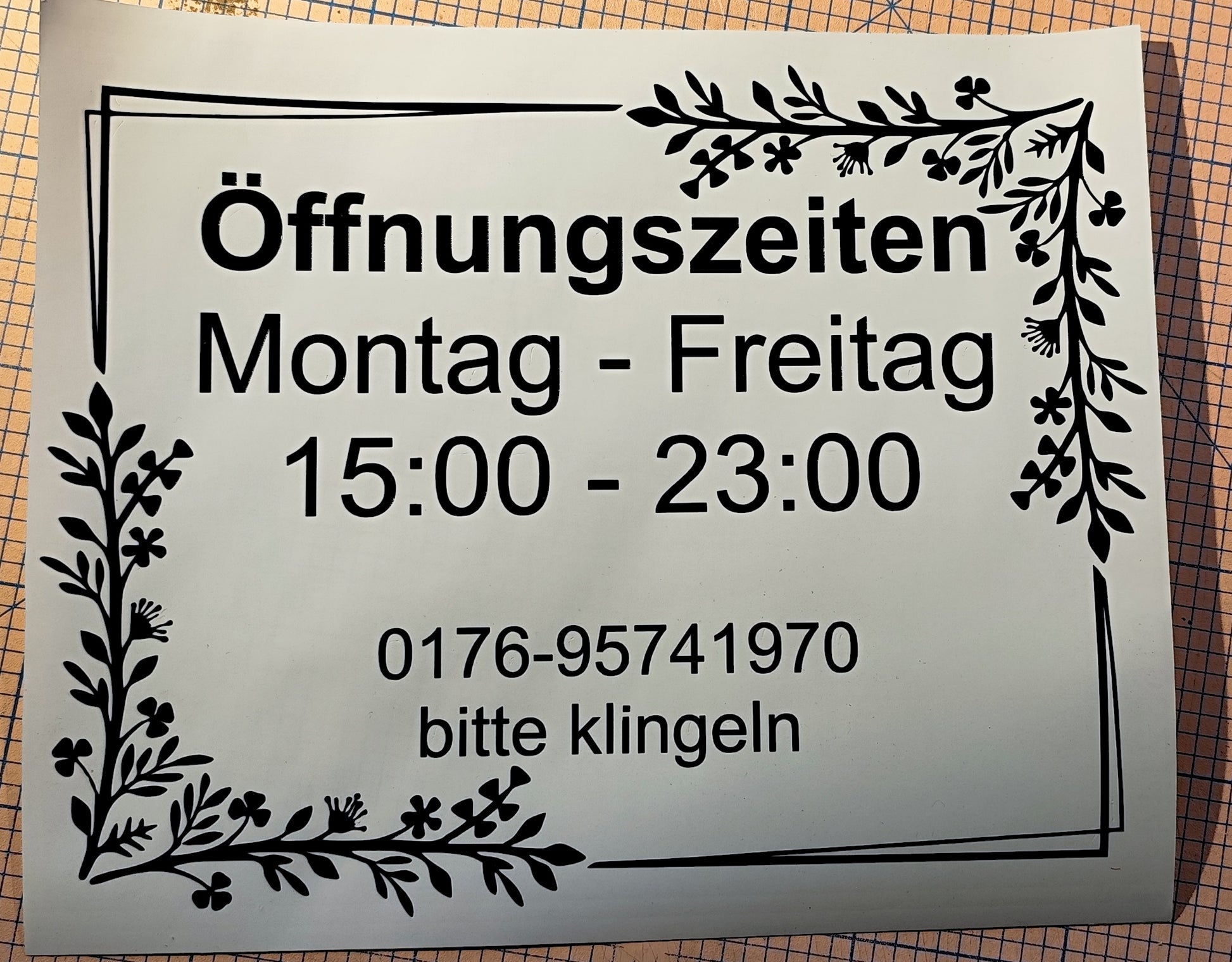 Individuelle Öffnungszeiten-Aufkleber | Wunschdesign & Wunschfarbe | Selbstklebend & leicht anzubringen