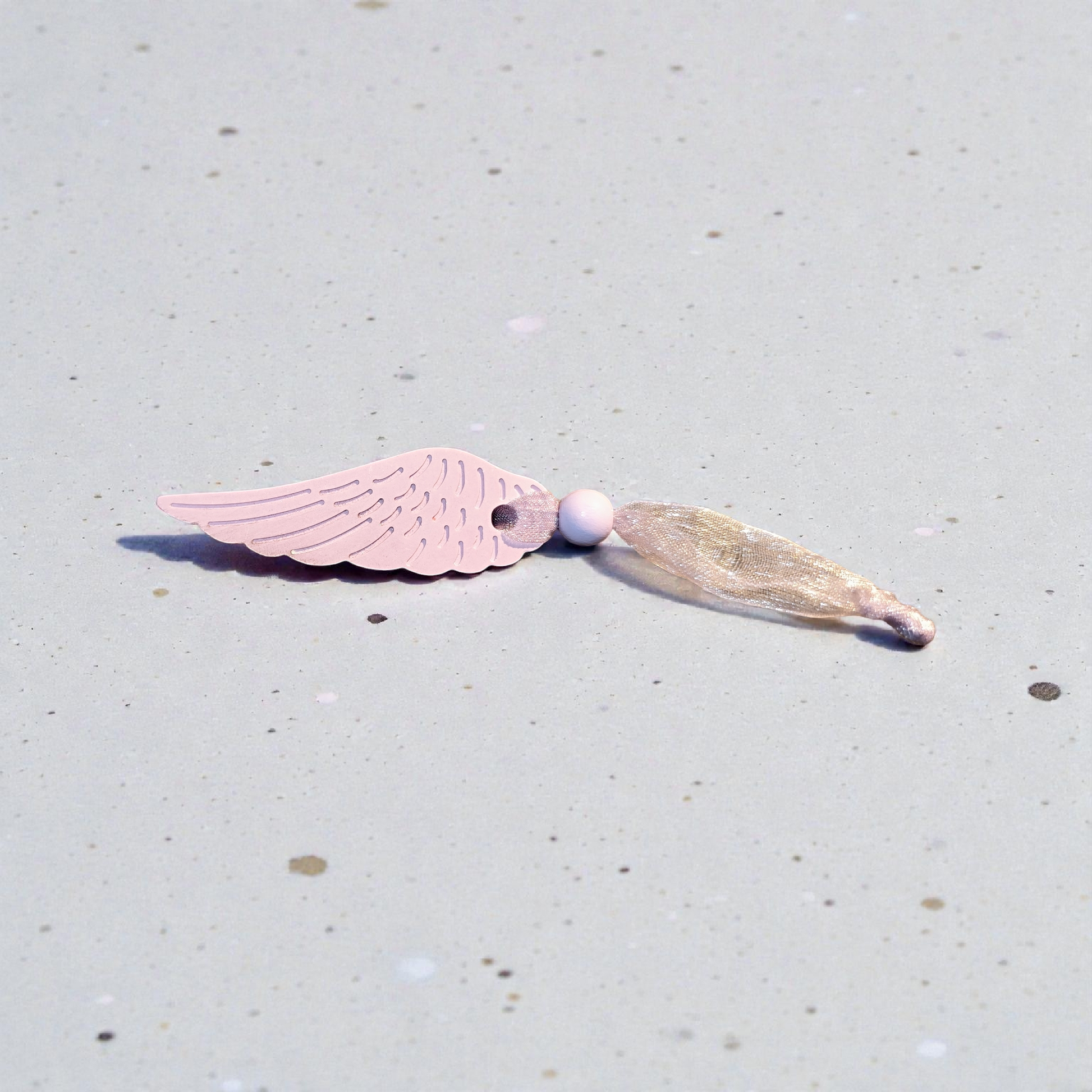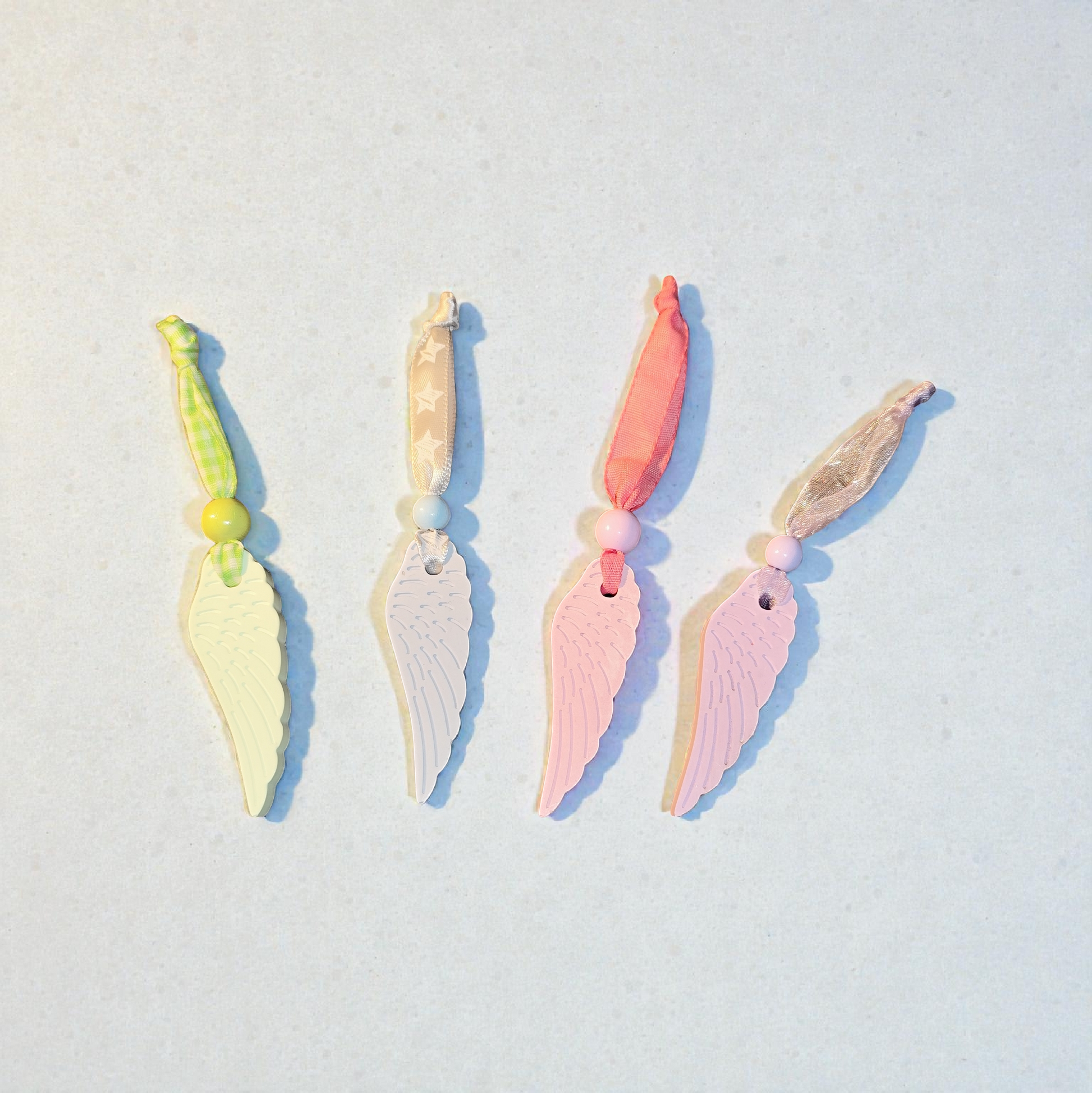 Keramikfeder Anhänger in Pastelltönen – handgegossen mit Holzperle & Band | Schutzengel Deko