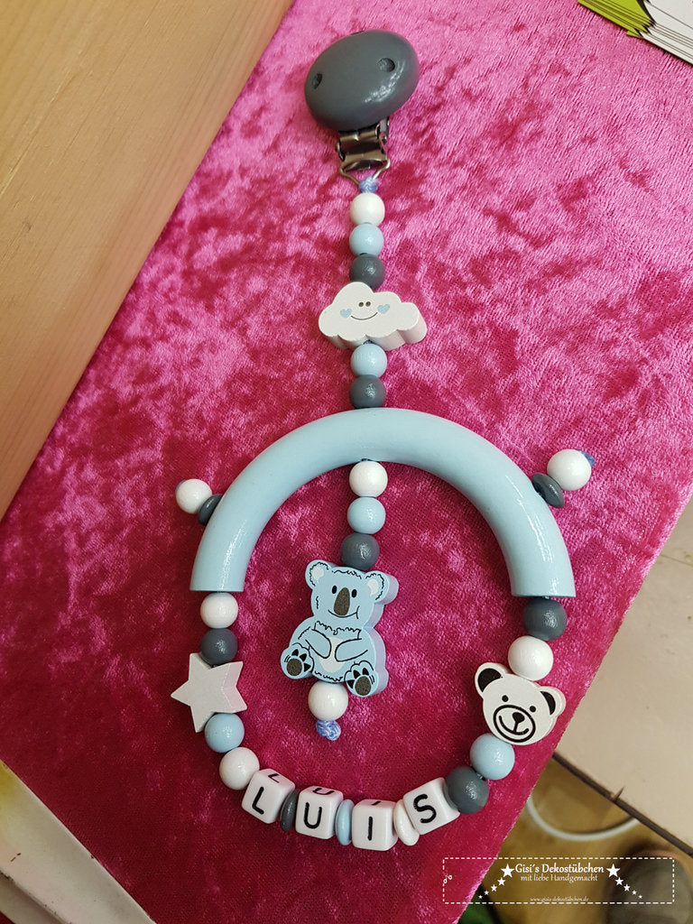 Kinderwagen Anhänger mit Name Bär Sterne grau