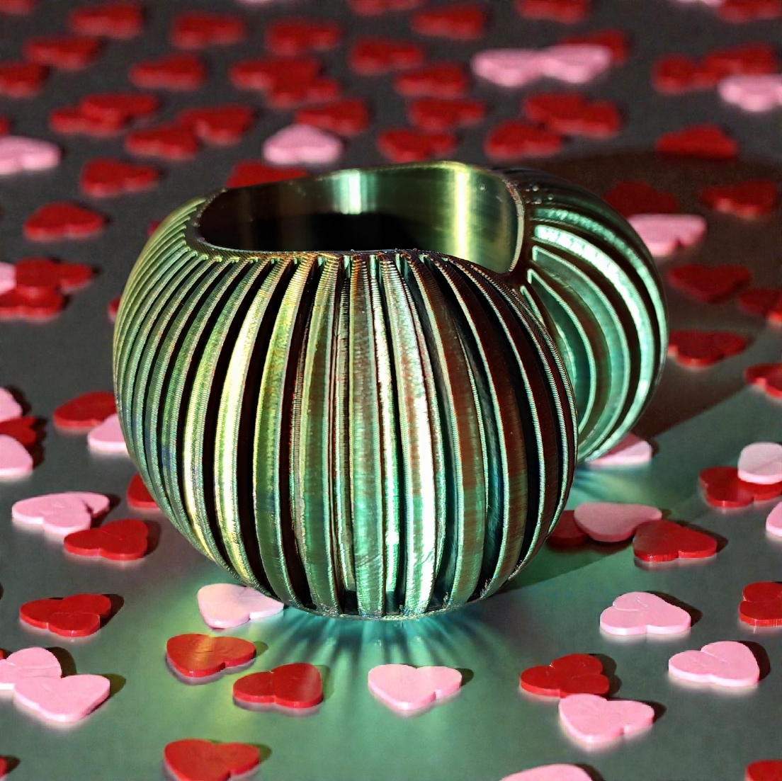 Das dekorative Herz überzeugt durch seine besondere Rillenstruktur, die dem Design Tiefe verleiht und vor allem bei schimmernden oder mehrfarbigen Filamenten wunderschöne Licht- und Farbeffekte erzeugt.