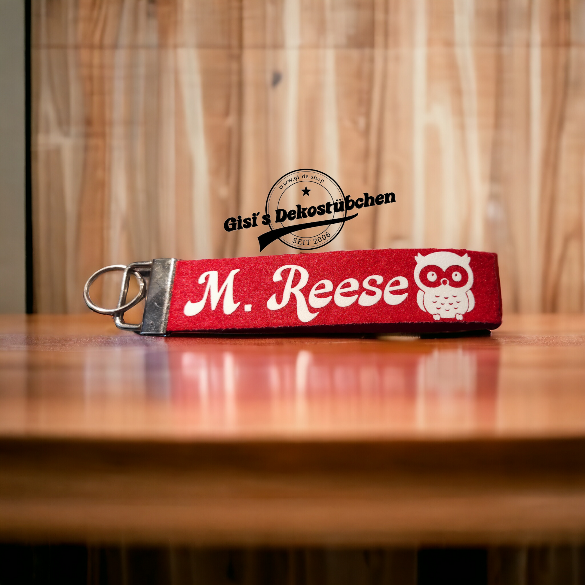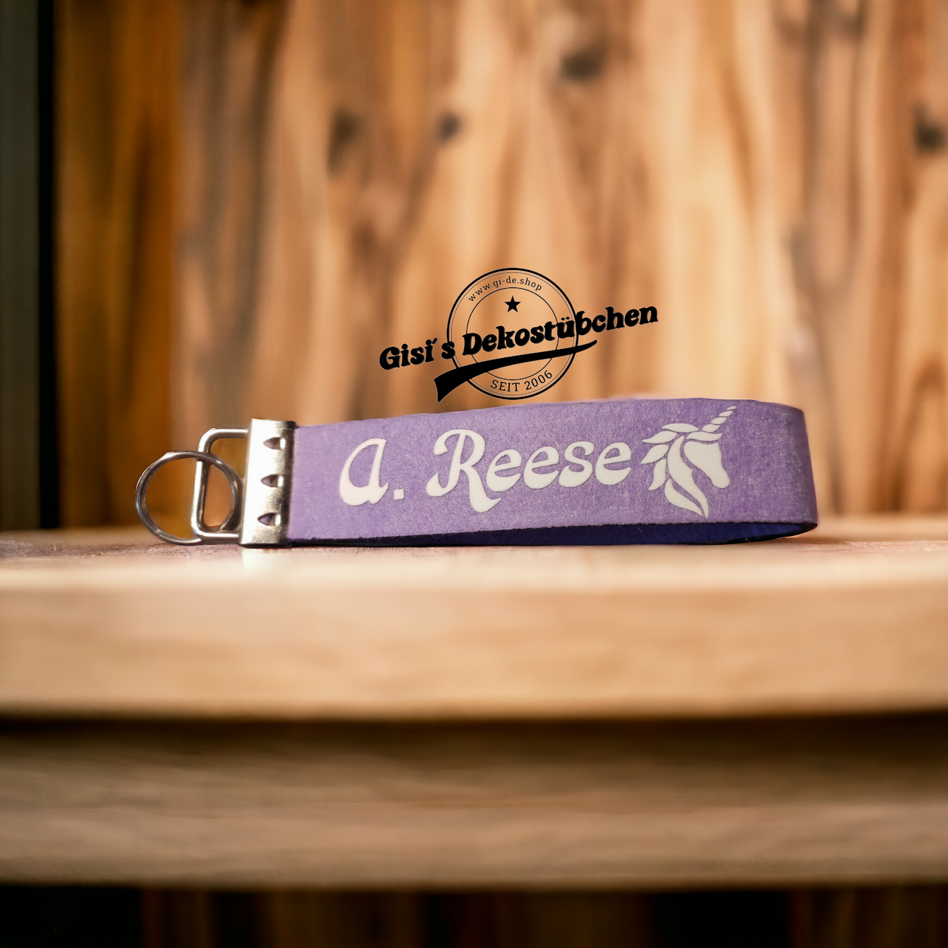 Wähle zwischen Schlüsselanhänger Farbe, Motiv und Schriftfarbe aus.