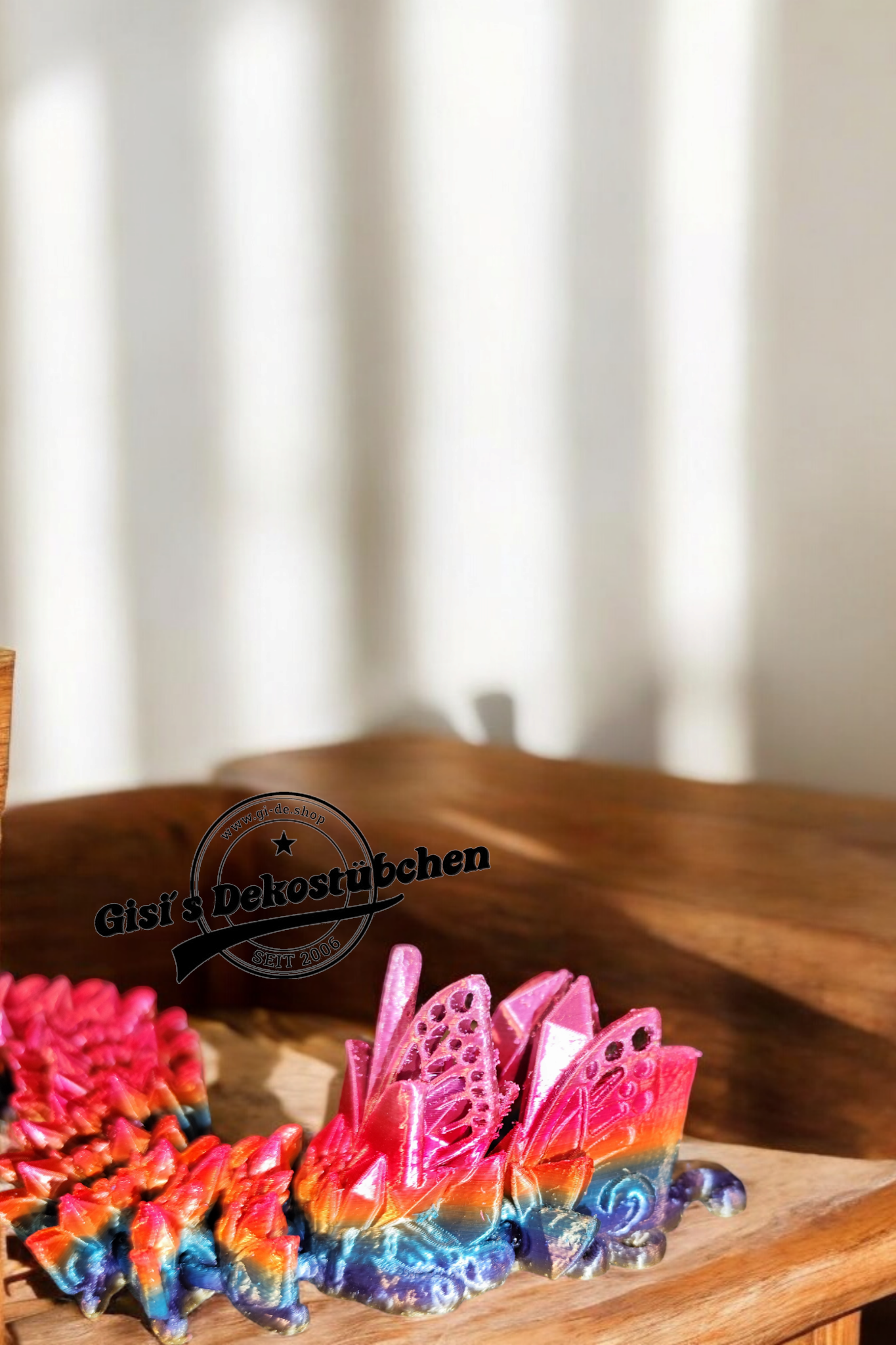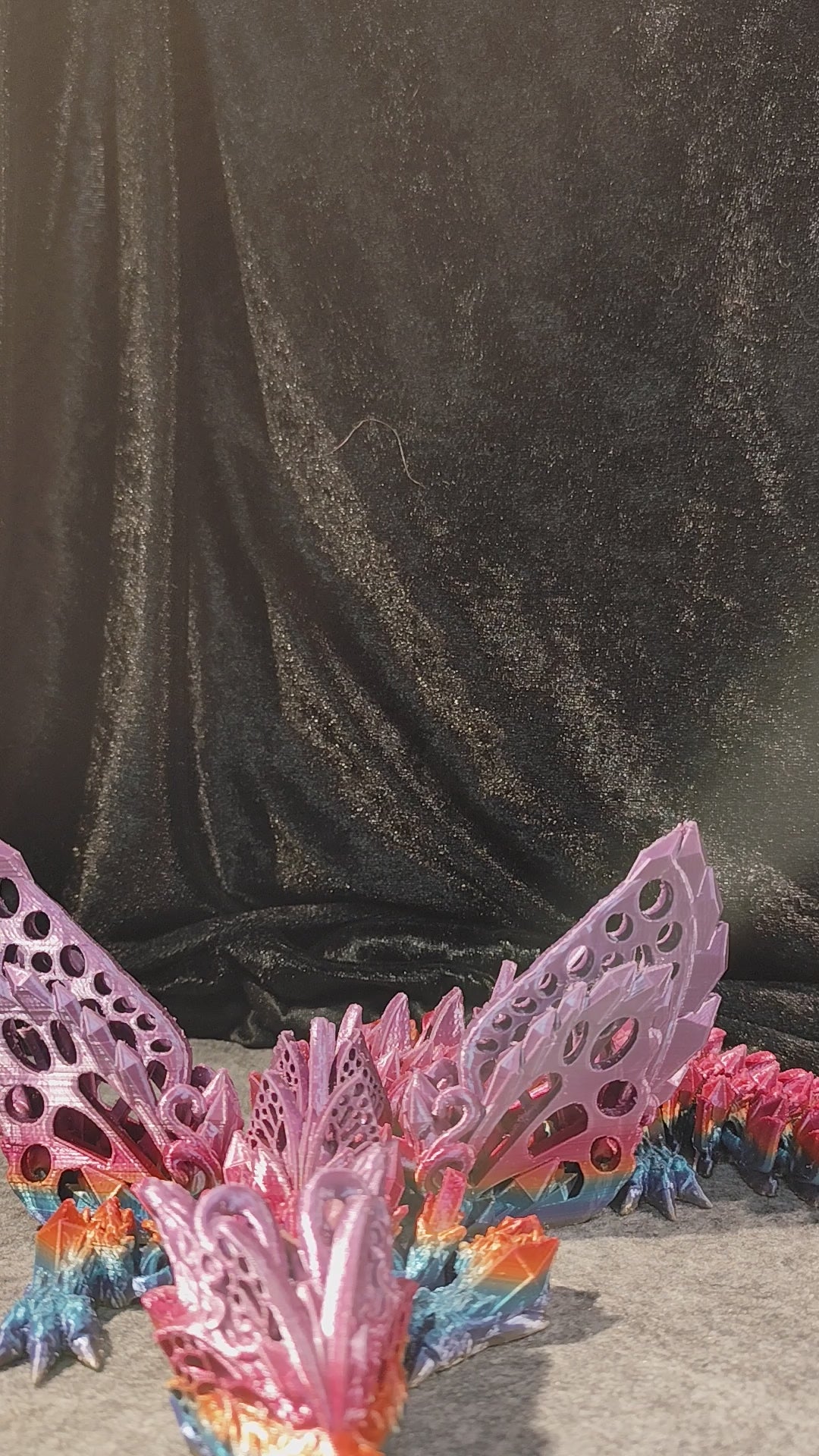 Entdecke den magischen 3D-gedruckten Drachen, der die Eleganz eines Schmetterlings mit der majestätischen Präsenz eines Wolfes vereint. Die Kombination aus Wolfs- und Schmetterlings-Design verleiht dem Drachen eine außergewöhnliche Ausstrahlung, die sowohl Mystik als auch Anmut verkörpert.