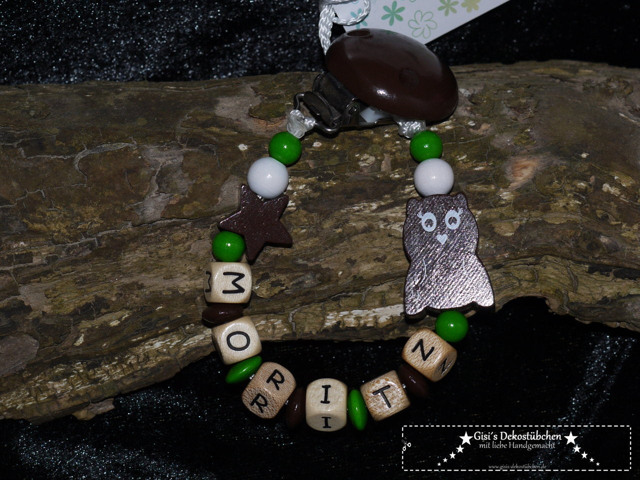 Liebevoll gestaltete Schnullerketten mit dem Namen des Kindes. Hier wird der Name des Kindes mit Buchstabenwürfel in die Schnullerkette eingearbeitet. So lassen sich wunderbar Namen auf der Schnullerkette verewigen. Diese besondere Personalisierung macht die Schnullerketten einzigartig und ist zudem ein sehr schönes Geschenk zur Geburt, Taufe oder Geschenk zur Babyparty. Mit dem personalisierten Schnullerketten ist eine Verwechslung ausgeschlossen. Es ist auch ein praktischer Helfer für den Alltag und eine tolle Erinnerung für später.