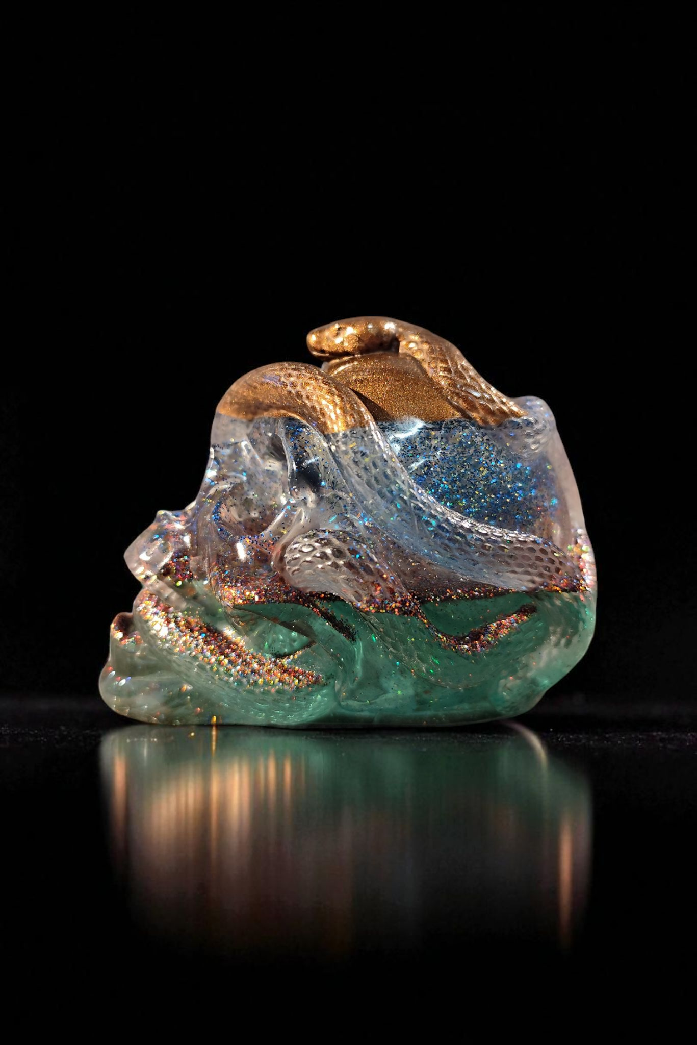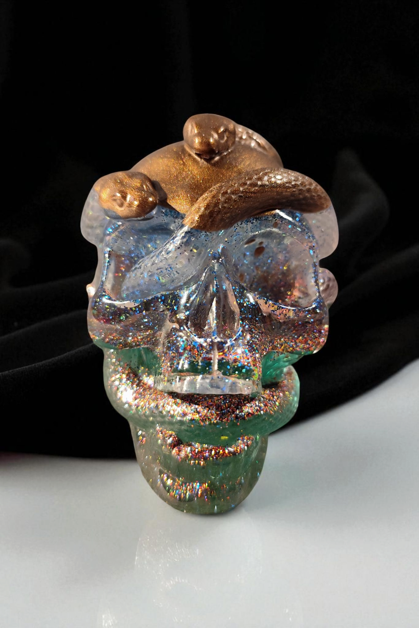 Totenkopf mit Schlangen – Epoxidharz-Unikat mit Glitzer & Pigmenten – Handgefertigte Horror-Deko