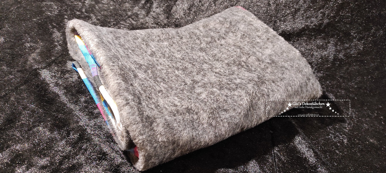 Den Microfleece in Grau habe ich mit einem feinen, bunten Jersey kombiniert. Ein schicker, edler Materialmix, der neben dem praktischen Nutzen, perfekt zur aktuellen Mode paßt!